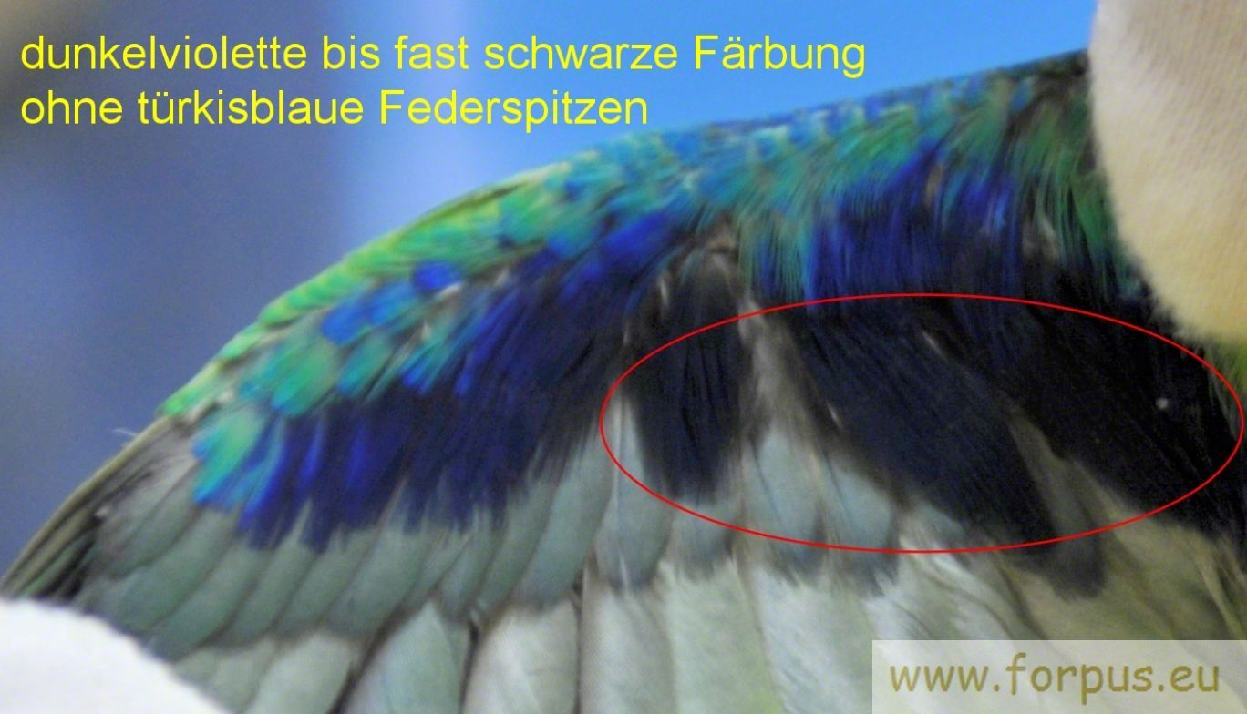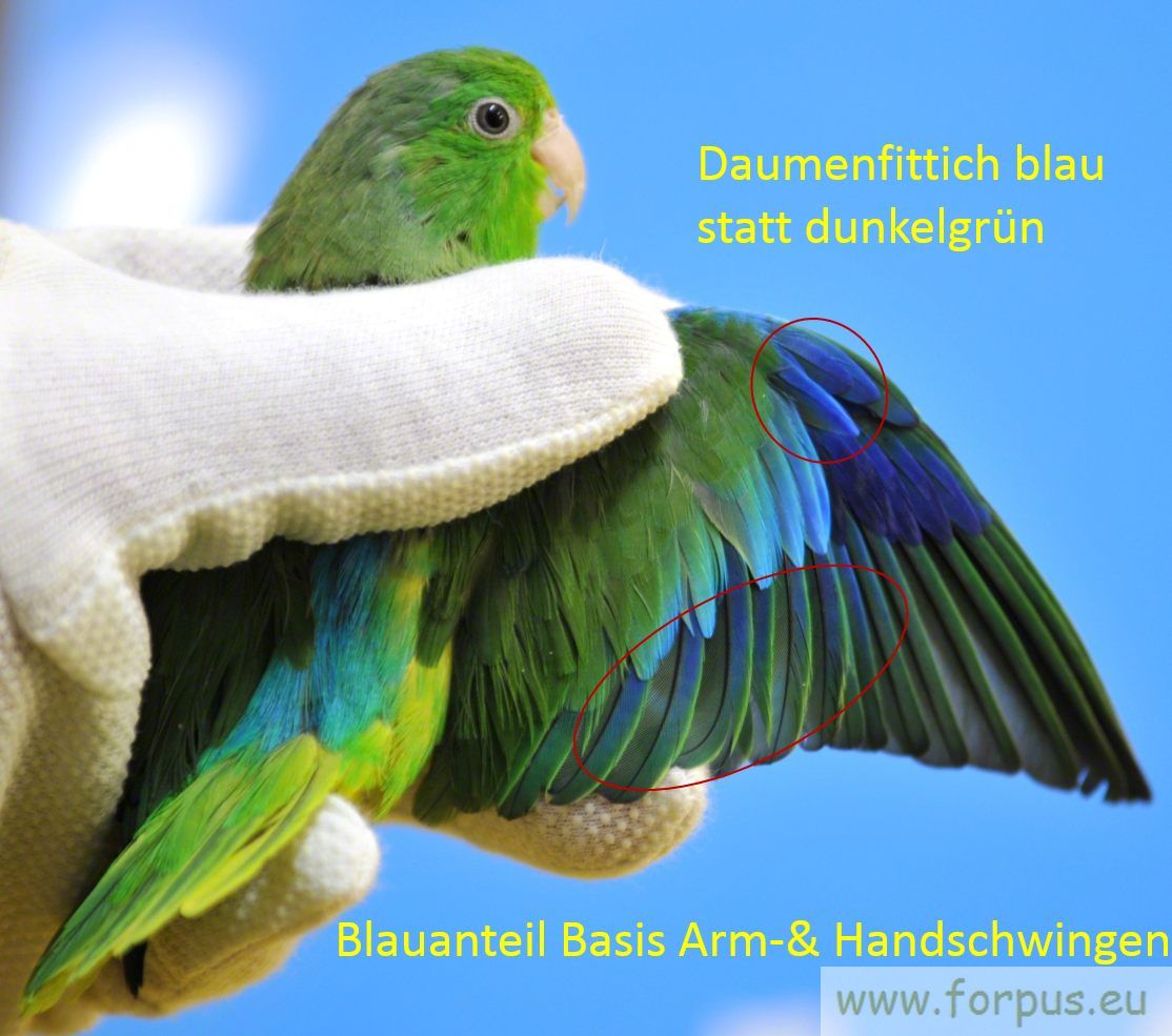 - Der Daumenfittich sollte dunkelgrün ausgefärbt und